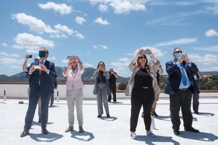 Temecula Valley Hospital staff watch and record as two Air Force aircrafts flyover the hospital in appreciation for healthcare workers and first responders on the frontline of the COVID-19 pandemic. Valley News/Shane Gibson photo