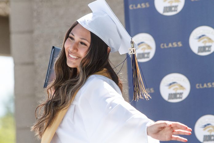 PHOTOS: Vista Murrieta graduates receive diplomas during ceremony filmingBy Shane Gibson - May 23, 2020ShareFacebookTwitterPinterestWhatsApp Vista Murrieta High School class of 2020 graduate Alina Conde smiles for the camera after receiving her diploma during the filming of the high school's graduation for virtual viewing, May 19. Valley News/Shane Gibson photo[caption id="attachment_Subscribe or log in to read the rest of this content.