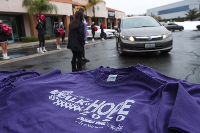 Supporters and participants of the Michelle’s Place Cancer Resource Center’s Walk of Hope attend a drive-thru event to pick up their Walk of Hope T-shirts, medals and other event items, before participating in a socially distant virtual walk for the fundraising event, Wednesday, Nov. 11. Valley News/Shane Gibson photo