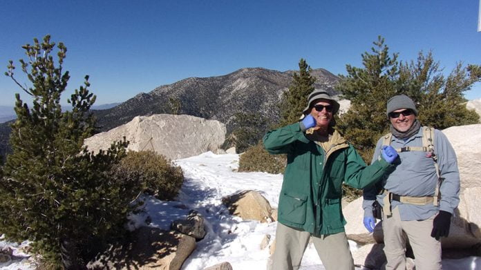 Dave Dolan, left, and his friend Dan Ruiz hike to the summit of Tahquitz Peak in the San Jacinto mountains. Anza Valley Outlook/Courtesy photo