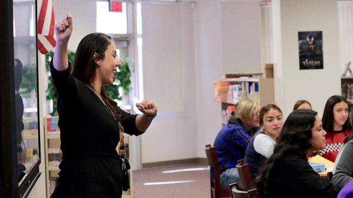 HEMET – Samia Muhareb, eighth grade social science instructor at Rancho Viejo Middle School, was recently featured as a “Superstar Teacher” in an educational blog celebrating classroom success using the Document Based Question learning model, Thursday, Jan. 28.The DBQ model provides a method of teaching evidence-based, argument writing so that students can learn the skills of primary source document analysis, gain historical thinking skills and learn how to write an argumentative essay using evidence from documents they have analyzed. Hemet Unified School District has been using the curriculum to supplement core adoptions in middle and high school history-social science. This year the district added the online version to support virtual learning.DBQ questions are commonly see