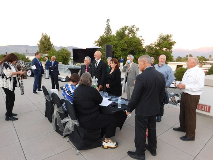 Hemet dignitaries and guests check in at the city’s annual State of the City Address by Mayor Karlee Meyer on the second floor patio of the Hemet Public Library, Nov. 5. Valley News/Tony Ault photo