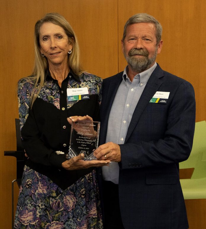Longtime Anza resident Billy Adams was posthumously honored with a distinguished service award by Anza Electric Cooperative’s generation and transmission provider, Arizona Electric Power Cooperative in Tucson, Arizona, during the utility’s annual meeting Friday, Oct. 8.Accepting the award was Hope Adams, his wife of nearly 20 years. Billy Adams died Nov. 12, 2019. The award recognizes individuals for their contributions to either AEPCO singly or jointly with a member cooperative.Billy Adams was an admired and respected member of the Anza community who