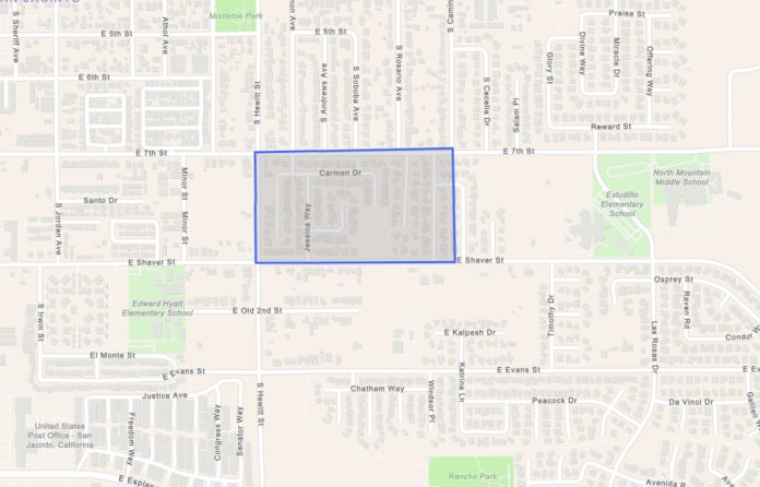 At about 8 a.m., an evacuation order was issued for homes east of Hewitt Street, south of Seventh Avenue, north of Shaver Street and west of Camino Los Banos. A care and reception center was established at San Jacinto High School at 500 Idyllwild Drive, Cal Fire officials said.