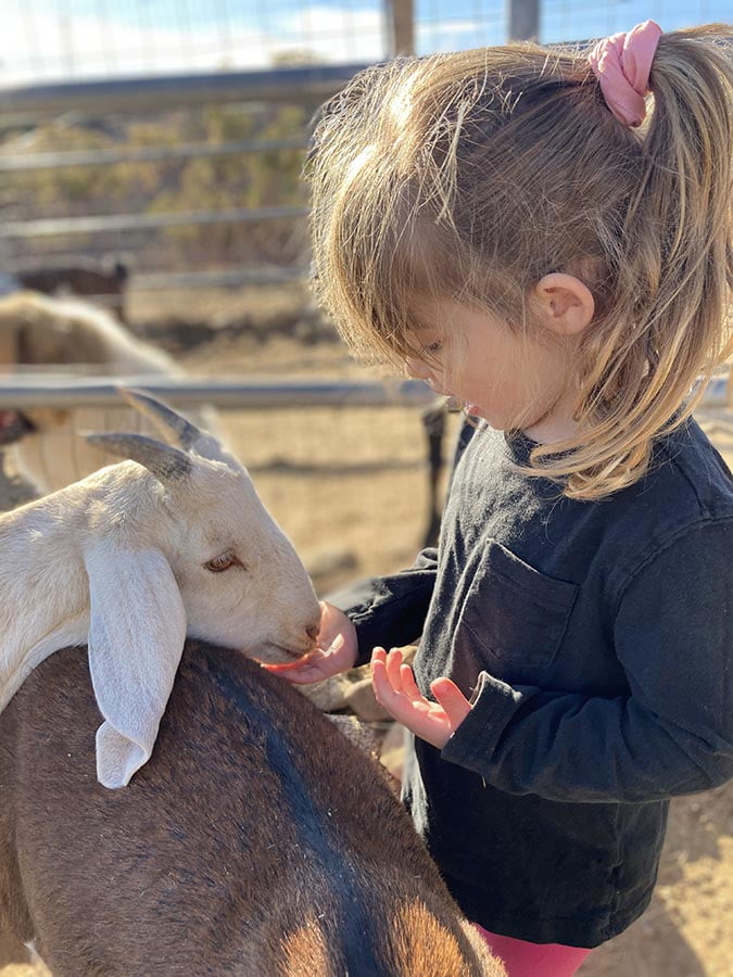 Children interact with friendly goats at the Freedom Farm open house Sunday, Nov. 20. Anza Valley Outlook/Diane Sieker photo
