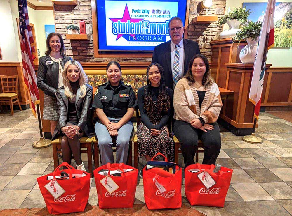 The Menifee Valley and Perris Valley Chambers of Commerce Student of the Month program, honoring local high school seniors, held its most recent recognition breakfast on Jan. 11 at the Perris Sizzler, 91 W. Nuevo Road. Sally Myers, who founded the nonprofit, welcomed everyone to the community-supported program which honors high school seniors for their character, their love of learning and how these students juggle numerous activities such as campus events, athletics and/or community service. It also commends those who have persevered through difficult life circumstances; all in a setting that honors God, their country, community, family and free enterprise.Gift bags filled with certificates of recognition, gift cards to local merchants and much more were donated by the program’s spo