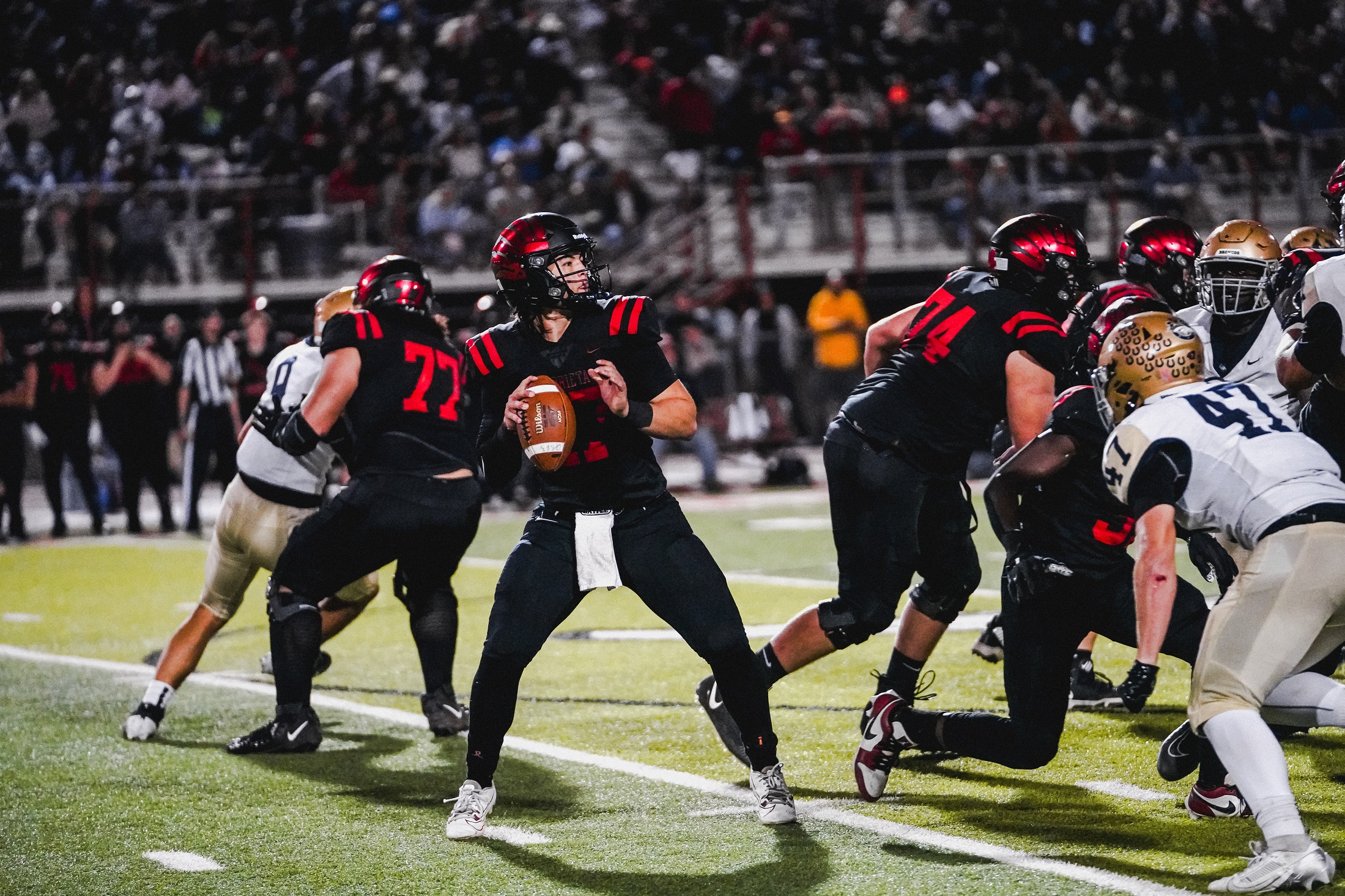 Bachmeier made an impressive season debut after missing the first eight games due to a knee injury. He showed little signs of rust, passing for 275 yards and throwing three touchdowns. Bachmeier also added a rushing touchdown, showcasing his dual-threat capability. Alongside him, Dorian Hoze was unstoppable on the ground, rushing for 265 yards and scoring four touchdowns. His performance helped Murrieta Valley amass 354 rushing yards, clearly outpacing Vista Murrieta’s 188 yards.