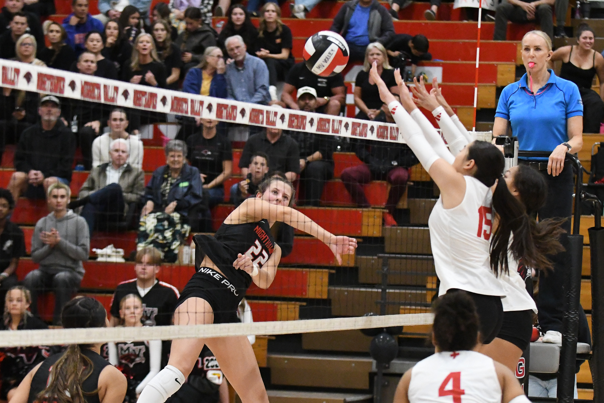 MURRIETA – The Murrieta Valley Nighthawks advanced to the CIF Southern Section Division 2 girls volleyball semifinals after a hard-fought five-set victory over Orange Lutheran on Wednesday night. The Nighthawks started strong, taking the first two sets 27-25 and 25-17, but the Lancers clawed their way back, winning the next two sets 25-21 and 25-19, setting the stage for a decisive fifth set.