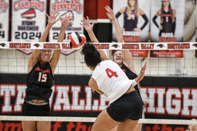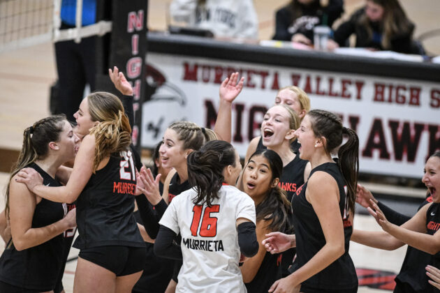 MURRIETA – The Murrieta Valley Nighthawks advanced to the CIF Southern Section Division 2 girls volleyball semifinals after a hard-fought five-set victory over Orange Lutheran on Wednesday night. The Nighthawks started strong, taking the first two sets 27-25 and 25-17, but the Lancers clawed their way back, winning the next two sets 25-21 and 25-19, setting the stage for a decisive fifth set.