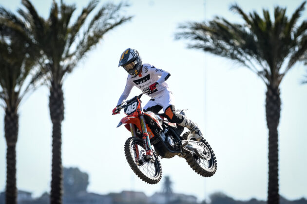 The standing-room-only crowd witnessed another epic battle in the 250cc Main Event, where Lake Havasu City’s Julien Beaumer charged to victory. Beaumer’s KTM sliced through the pack after starting sixth off the gate. He gained ground steadily, taking the lead on lap nine and holding off North Carolina’s Jordan Smith to claim a 3.1-second win. Temecula’s Haiden Deegan thrilled local fans with his third-place finish.