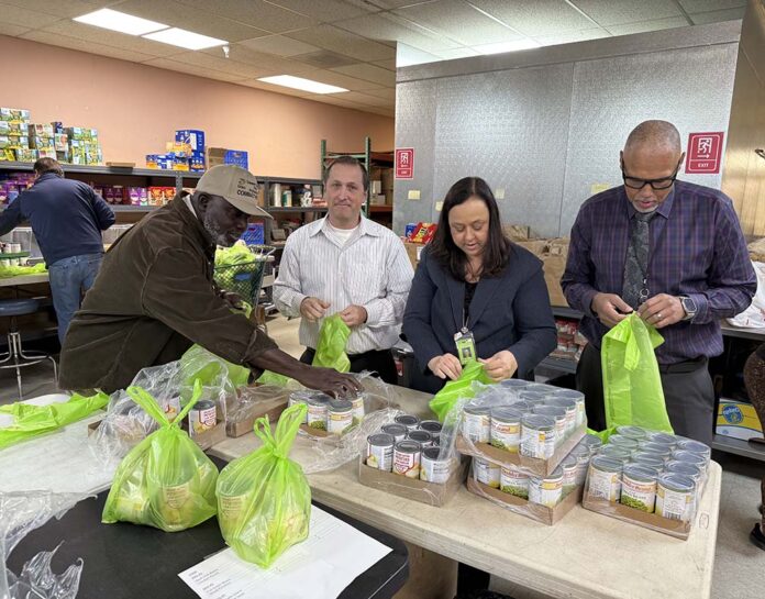 Volunteers help with rescue food packaging at Menifee’s Community Cupboard during wind crisis