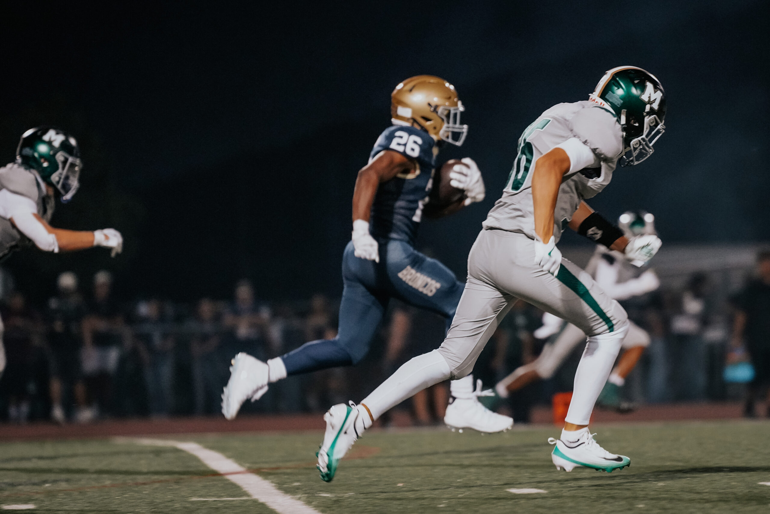 Murrieta Valley kept pace early with spectacular special teams play, as Jacob Taddi and Jeremiah Watson returned consecutive kickoffs for touchdowns covering 94 and 75 yards, respectively. Receiver Derrick Johnson II caught three touchdown passes to keep the Nighthawks within striking distance.