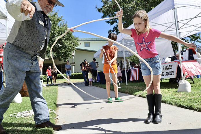 Clementine Matics, 8, spins a lasso at the Temecula History Day event on Saturday, Oct. 11. Visitors filled Sam Hicks Monument Park to take part in various activities, like roping and line dancing lessons, gemstone mining, and educational talks about Western arts and culture. Valley News/Shane Gibson photo