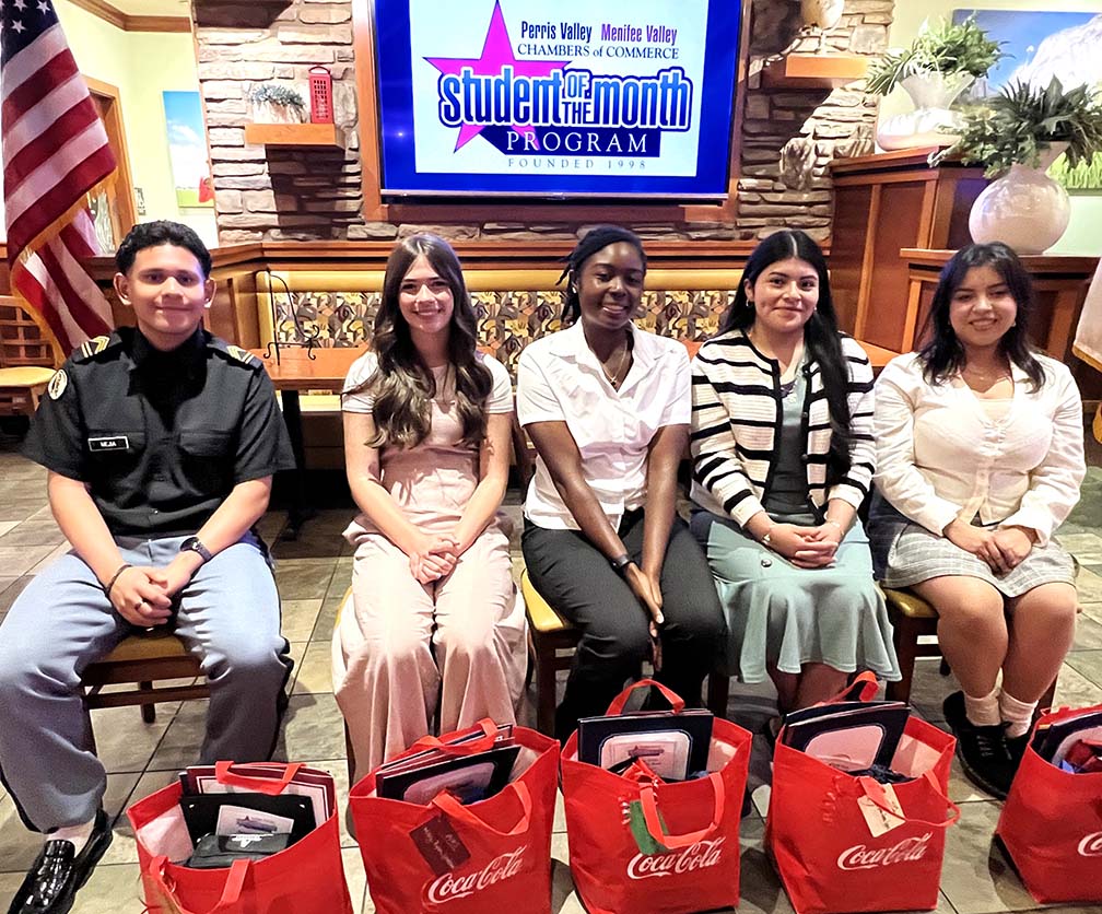 The Perris Valley Chamber of Commerce and the Menifee Valley Chamber of Commerce held their first Student of the Month breakfast of the 2025-2026 school year at the Perris Sizzler, 91 West Nuevo Road on Sept. 10. Perris Union High School District Superintendent Jose Luis Araux emceed the event and explained the mission of the nonprofit organization that was founded by Sally Myers of BMW Management/Sizzler Restaurants.“The Student of the Month program is a local high school recognition supported by our community to acknowledge, to honor college, vocational and trade school bound senior students for their character, for their love and passion for learning, for their commitment to academics, for their participation in school activities, for the ability to persevere or to overcome diffic