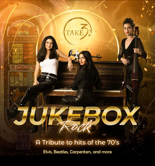 FALLBROOK – As part of its 2025-2026 concert series, Fallbrook Music Society presents TAKE3 and “Jukebox Rock,” a high-energy concert that promises to deliver an unforgettable afternoon experience.This dynamic vocal and instrument trio will transform classic’70’s hits with a fresh, new twist, bringing a unique perspective to their performance. As part of a national tour, the TAKE3 Fallbrook performance will take place on Sunday, Oct. 26 at 2 p.m. in the Mission Theater.“We anticipate a large turnout for this unique performance, so we suggest getting your tickets early,” said Bob Freaney, president of Fallbrook Music Society.“Known for their unmistakable style, down-to-earth onstage personalities and their