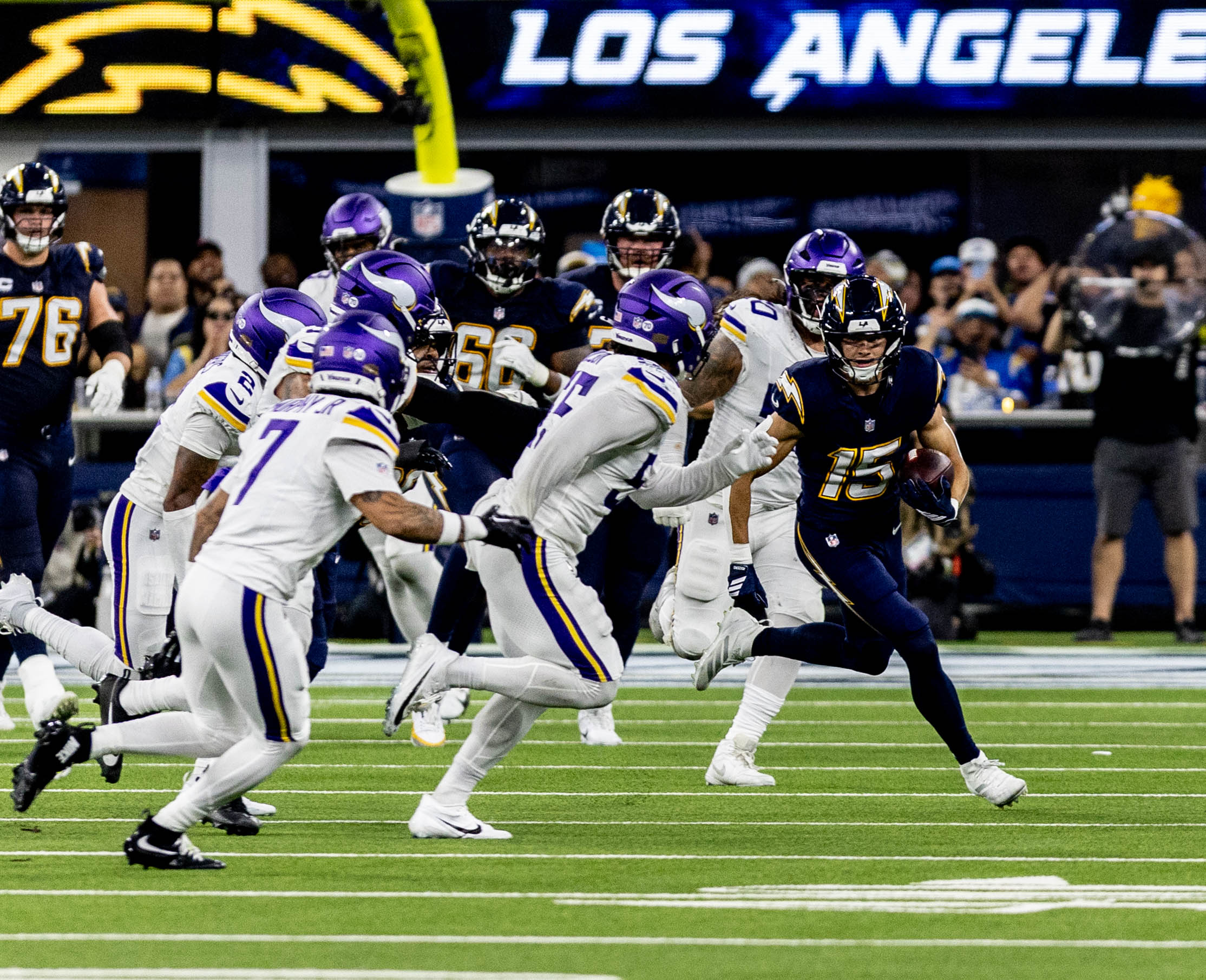 Rookie players made significant contributions across the board. In addition to Vidal’s touchdown, wide receiver Tre’ Harris caught his first NFL touchdown on a 6-yard pass from Herbert in the fourth quarter. On the ensuing Vikings possession, rookie safety RJ Mickens secured his first career interception.