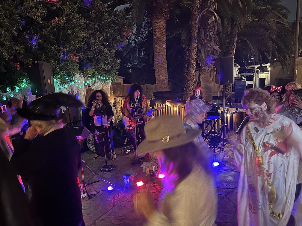 Saturday night, October 25, Fallbrook came alive with generosity, laughter, and a touch of spooky charm. The 127 Social House was packed wall to wall, as well as both patios, with costumed guests, Dance Revolution Band played over the bridge and across the creek with DJ “Wes the Mess.” “It was great to see people having fun and dancing to the great music. Dancing happened most of the night. Valerie Thruelsen once again sponsored a great event to offer some fun for Fallbrook. As a fundraiser, it built on the success of last year and once again proved how strong and spirited this community truly is.Guests mingled among glowing pumpkins, cobwebs, and animatronics, ready to enjoy the night. The highlights of the evening were the raffles (including $50 and $100 gift certificates) and