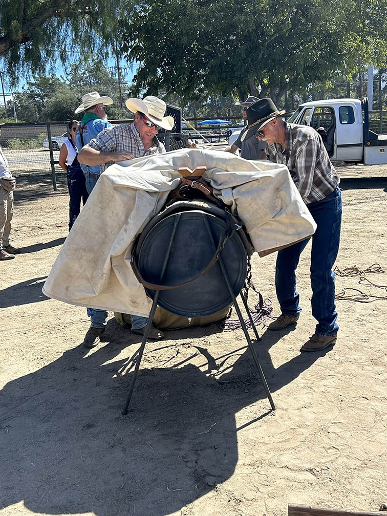 The Redshank Riders Unit of Backcountry Horsemen hosted a hands-on packing education clinic Saturday, Oct. 11, at Winchester Saddlery in Temecula, drawing equestrians eager to learn the finer points of backcountry packing.Expert packers Michael Lewis, Jack Peckham, Stacy Kuhns, Greg Bruce and Elle Robertson led the four-hour workshop, sharing their knowledge and passion for keeping traditional packing skills alive.Lewis discussed gear in detail, elaborating on the different types of pack saddles, pads, panniers and other necessary equipment. He displayed an assortment of pack bags, slings and boxes, showing attendees how each serves a specific purpose when traveling the trails.The clinic featured both live mules and “metal mules” - life-sized training models - allowing part