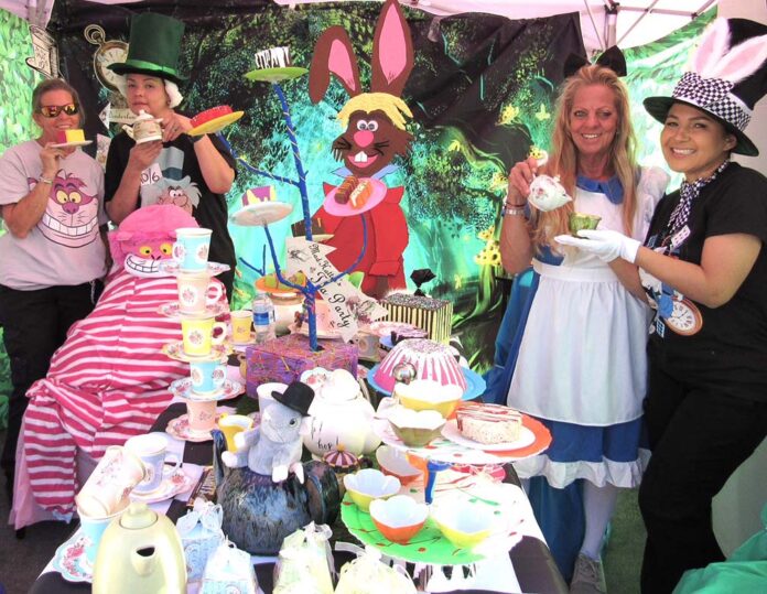 Members of Soboba’s Janitorial Department go all out to recreate the Mad Hatter’s Tea Party from Alice in Wonderland for preschool students who attended the Trunk or Treat event on Oct. 30 at the Soboba Sports Complex. Their display resulted in a first-place win for best decoration. Valley News/Soboba Band of Luiseño Indians photo