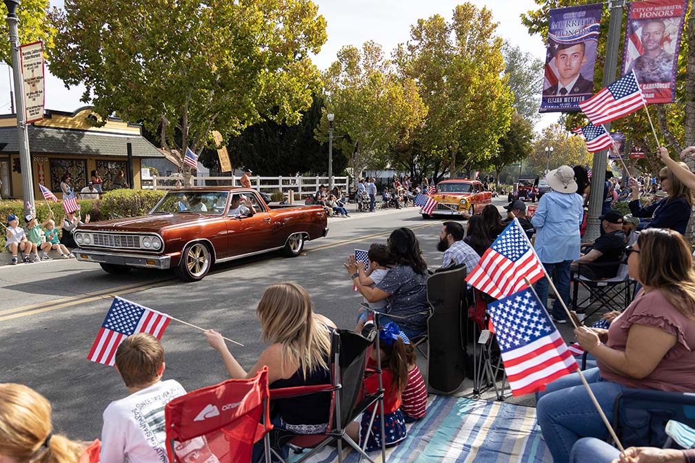 Members of the Murrieta Mesa Navy JROTC march down Washington Ave during the Murrieta Veterans Day Parade, Tuesday, Nov. 11, 2025. Valley News/Andrew Foulk photoMembers of the Temecula Cowgirls, parade and drill team carry flags as they ride their horses down Washington Ave during the Murrieta Veterans Day Parade, Tuesday, Nov. 11, 2025. Valley News/Andrew Foulk photoMurrieta Mayor Cindy Warren smiles and waves as she rides in the back of a classic car down Washington Ave during the Murrieta Veterans Day Parade, Tuesday, Nov. 11, 2025. Valley News/Andrew Foulk photoPeople wave American flags as members of the Murrieta Rotary Club carry flags of their own as they march down Washington Ave during the Murrieta Veterans Day Parade, Tuesday, Nov. 11, 2025. Valley News/Andrew Foulk photoMembers of Supreme Dance Center perform as they march down Washington Ave during the Murrieta Veterans Day Parade, Tuesday, Nov. 11, 2025. Valley News/Andrew Foulk photoA group of small children sit on the edge of Washington Ave as they watch the Murrieta Veterans Day Parade, Tuesday, Nov. 11, 2025. Valley News/Andrew Foulk photoMembers of the Murrieta Valley High School Crimson Cadets perform as they march down Washington Ave during the Murrieta Veterans Day Parade, Tuesday, Nov. 11, 2025. Valley News/Andrew Foulk photoMurrieta Mayor Pro Tem Jon Levell waves an American flag as he rides in the back of a classic car down Washington Ave during the Murrieta Veterans Day Parade, Tuesday, Nov. 11, 2025. Valley News/Andrew Foulk photoBrixton Barker, waves an American flag, as he sits with his family on Washington Ave during the Murrieta Veterans Day Parade, Tuesday, Nov. 11, 2025. Valley News/Andrew Foulk photoSupervisor and Grand Marshal Chuck Washington waves as he rides in the back of a classic car down Washington Ave during the Murrieta Veterans Day Parade, Tuesday, Nov. 11, 2025. Valley News/Andrew Foulk photo