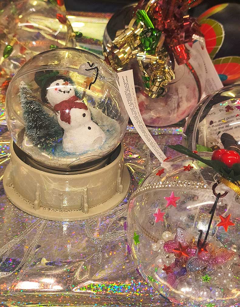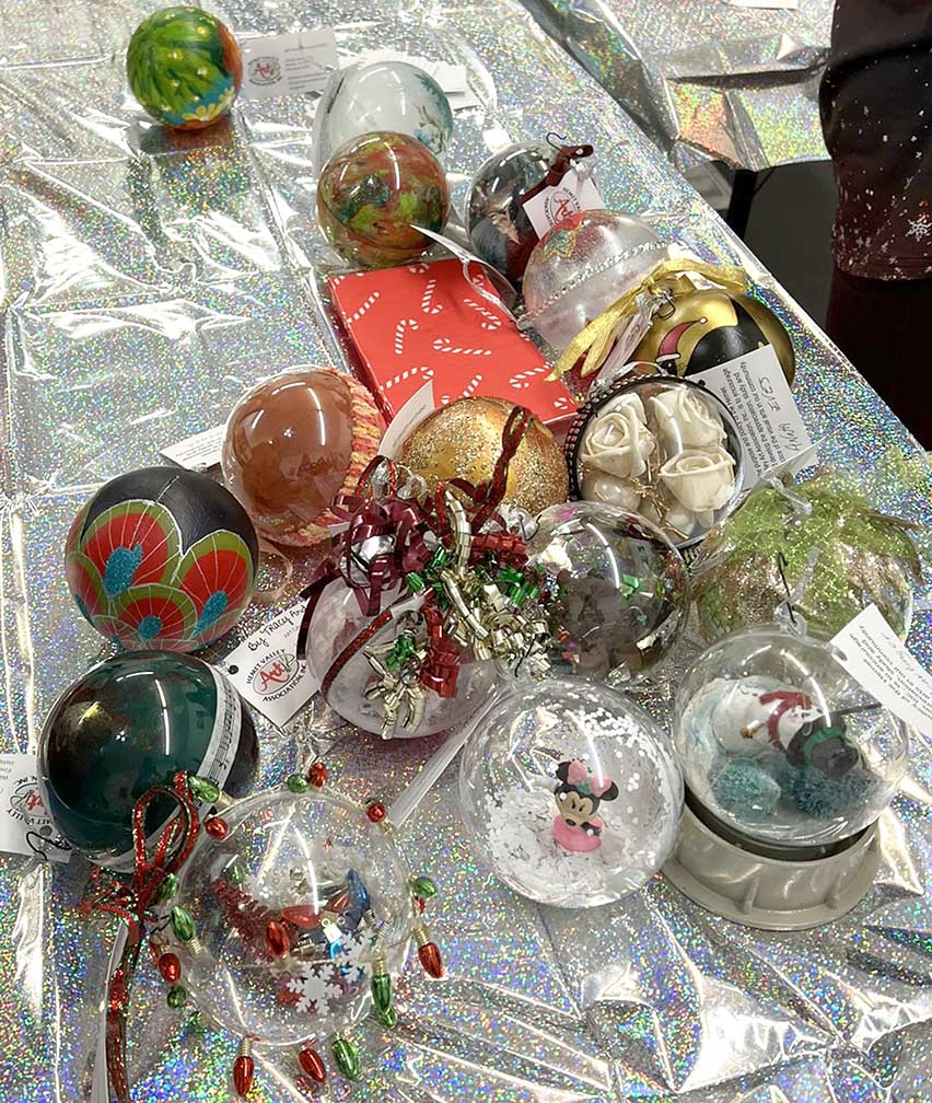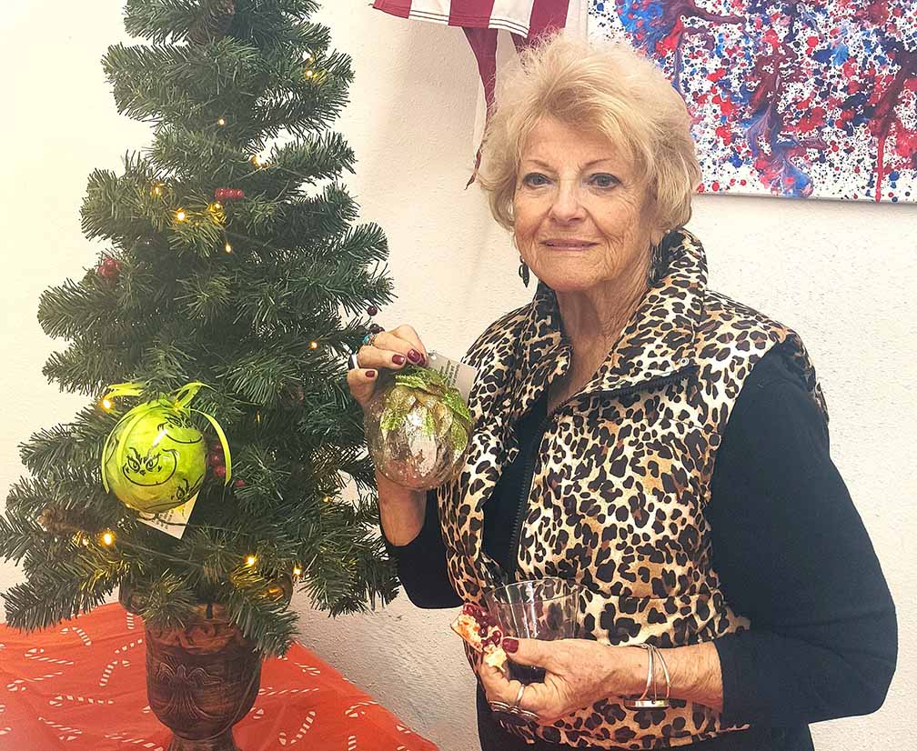 Darlene Woodcock has lent her creativity to local Soroptimists chapter for many years and joined the HVAA this year. As Ornament Project Chair, she proposed the idea of decorating a tree to fellow artists and they were all in to help this worthy cause. On Nov. 13, 20 artists each completed a blank 4-inch ball in the media of their choice.