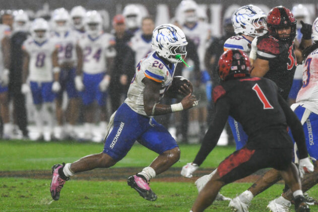 The miserable conditions forced both teams to rely heavily on their ground attacks. Gaines was a significant part of the Broncos’ offensive plan, making his presence felt throughout the game. The freshman running back was a bright spot for the Boise State offense, rushing for 78 yards on 13 carries. He demonstrated toughness, fighting for extra yards on nearly every touch. One of his notable contributions came on a second-quarter drive where back-to-back runs for first downs moved the Broncos deep into Aztec territory, setting up their only score of the game.