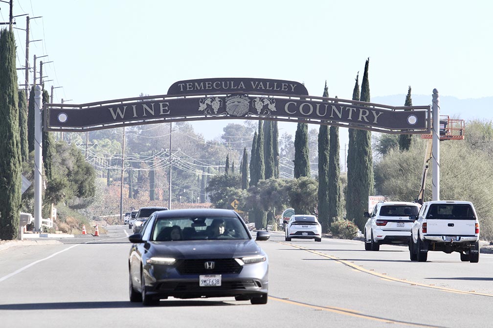 Julie Reeder and Joe NaimanValley News StaffAfter more than a year of planning, approvals, and construction, a new gateway now welcomes visitors to wine country.The “Temecula Valley Wine Country Archway” was lifted into place overnight Monday and Tuesday, Nov. 24–25, marking the completion of a long-anticipated entry monument along Rancho California Road just east of Butterfield Stage Road.The project was awarded last summer when the Riverside County Board of Supervisors approved a $744,100 construction contract with US Builders and Consultants, Inc.. All submitted bids exceeded the engineer’s estimate at the time, prompting the board to approve a revised total project budget of $1.112 million to cover construction, design, environmental review, engineering, inspect