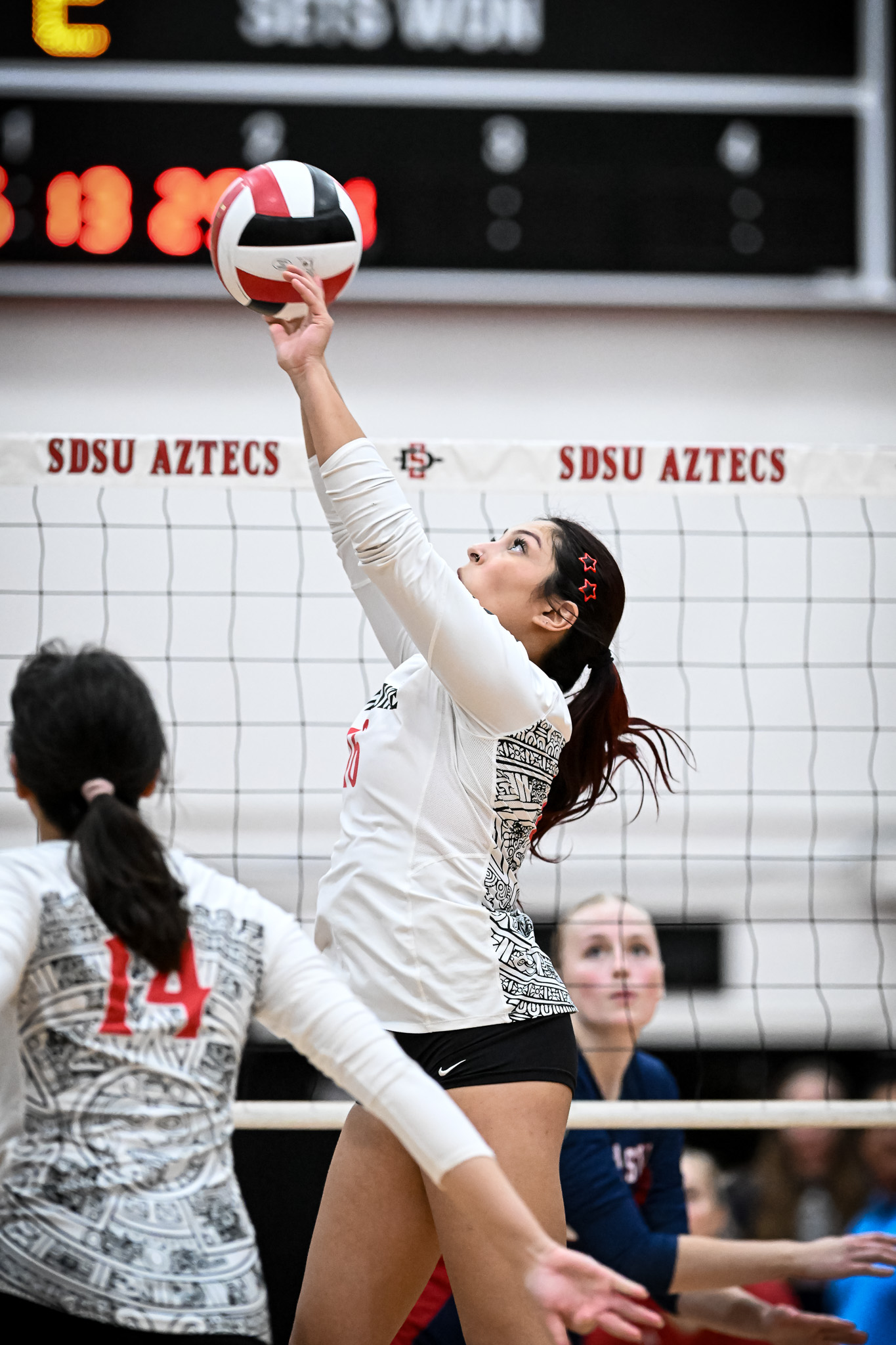 Individually for the Aztecs, Madison Corf led all players with 14 kills on a .478 hitting percentage. Ella Schabort added 10 kills, while Talea Mitchell contributed seven kills on a .700 hitting clip.