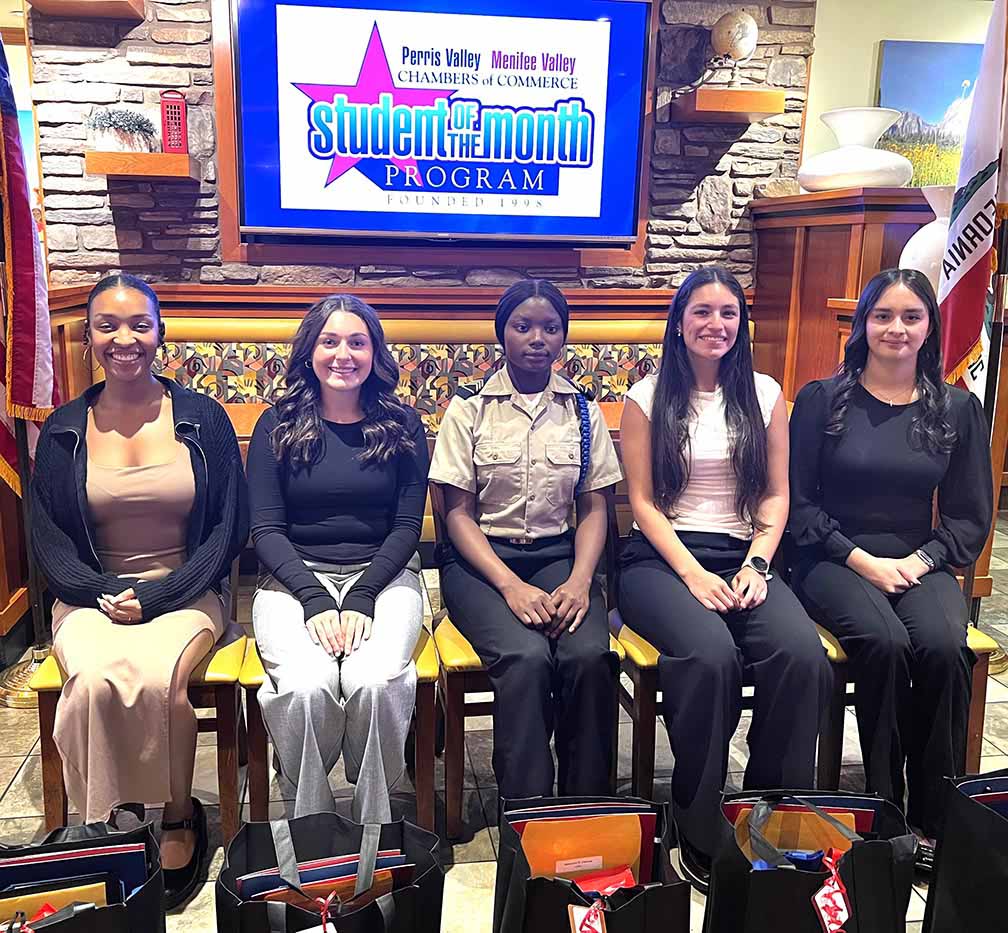 November’s students of the month are California Military Institute’s Adewunmi Oderinde, Heritage High School’s Maylin Sanders, Liberty High’s Olivia Carlon, Paloma Valley’s Gabriela Sevilla, and Perris High School’s Gisselle Rodriguez DeLaTorre.