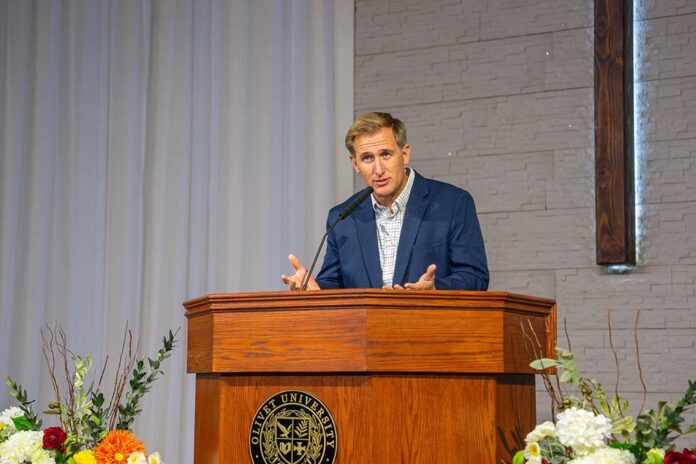 Anza Baptist Church senior pastor Matthew Nevills delivers a heartfelt message at Olivet University’s Fall Sermon Series Wednesday, Dec. 17. Anza Valley Outlook/Courtesy photo