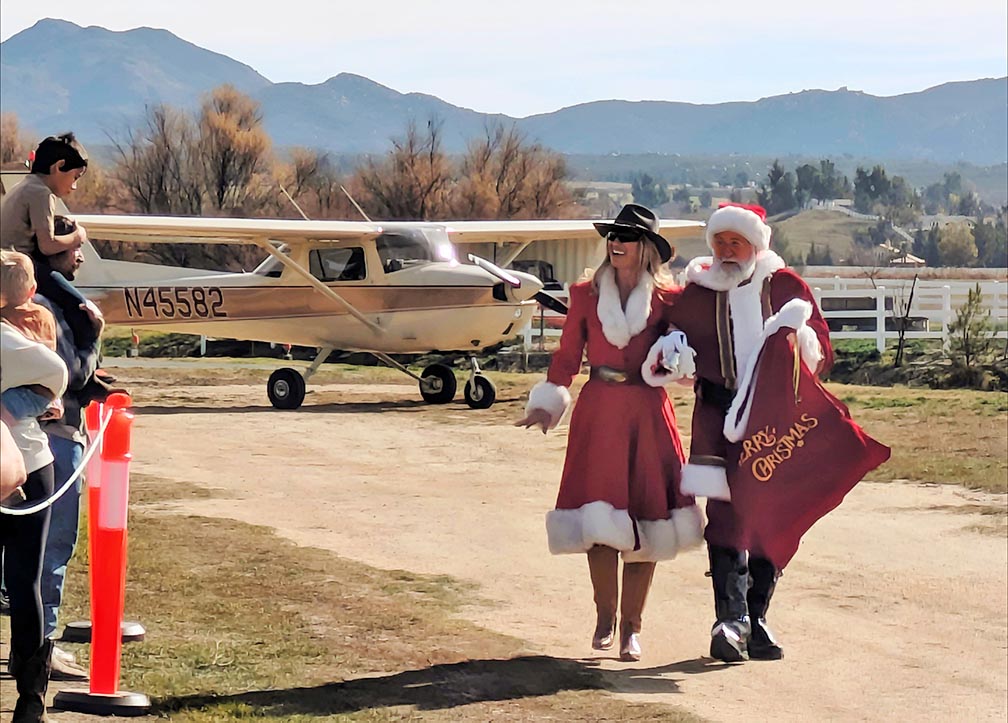 Santa and Mrs. Claus deplane, ready to meet and greet at the Santa Flying In event Saturday, Dec. 20. Anza Valley Outlook/Gem Ann Garner photo