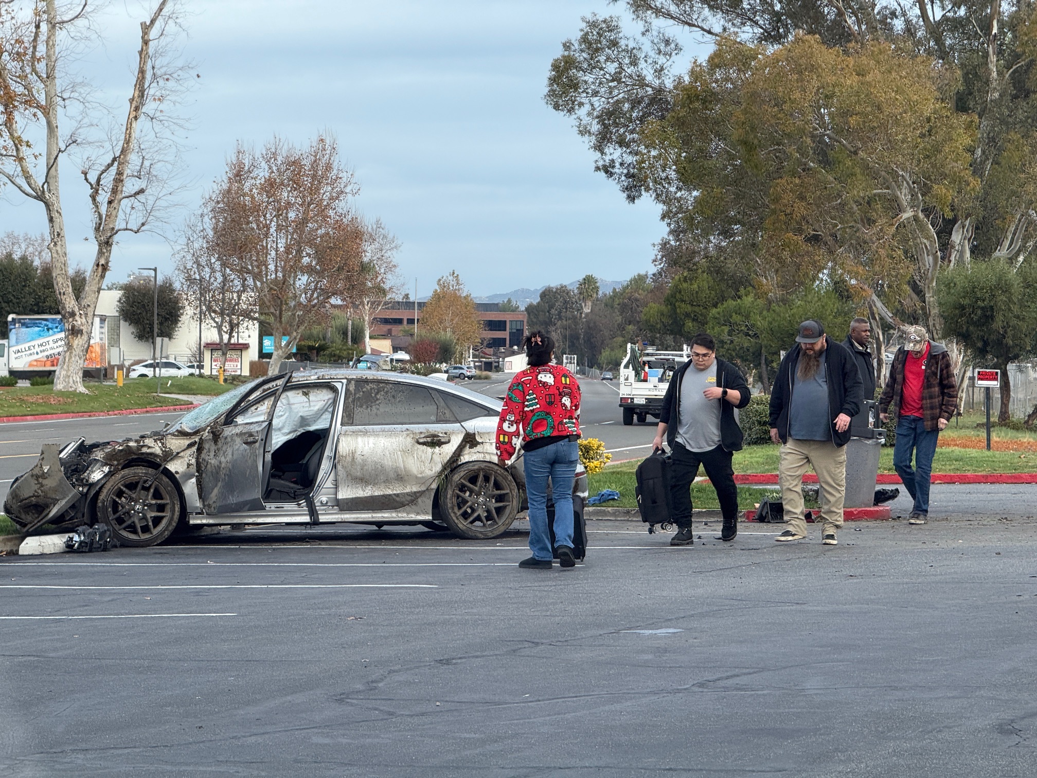 The crash was reported shortly after 8:15 a.m. Dec. 26, according to the California Highway Patrol. CHP officers said a silver Honda Civic suffered a tire blowout, causing the driver to lose control, collide with a red Ford F-250 pickup truck.