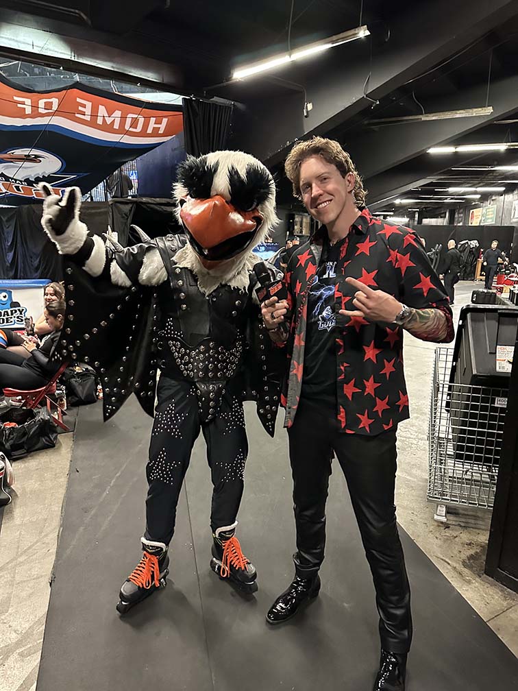 On any given weekend, local resident Kaz Egan, at 6’5”, might be sprinting across a baseball field in Lake Elsinore, pacing the ice at a packed hockey arena in San Diego, standing center-ring at a nationally televised wrestling event, or hyping up tens of thousands of fans before the Savannah Bananas take the field. His job title changes depending on the venue—on-field MC, in-arena host, live event host, ring announcer—but the mission is always the same: turn a crowd into a community and make them forget everything else for a few hours.