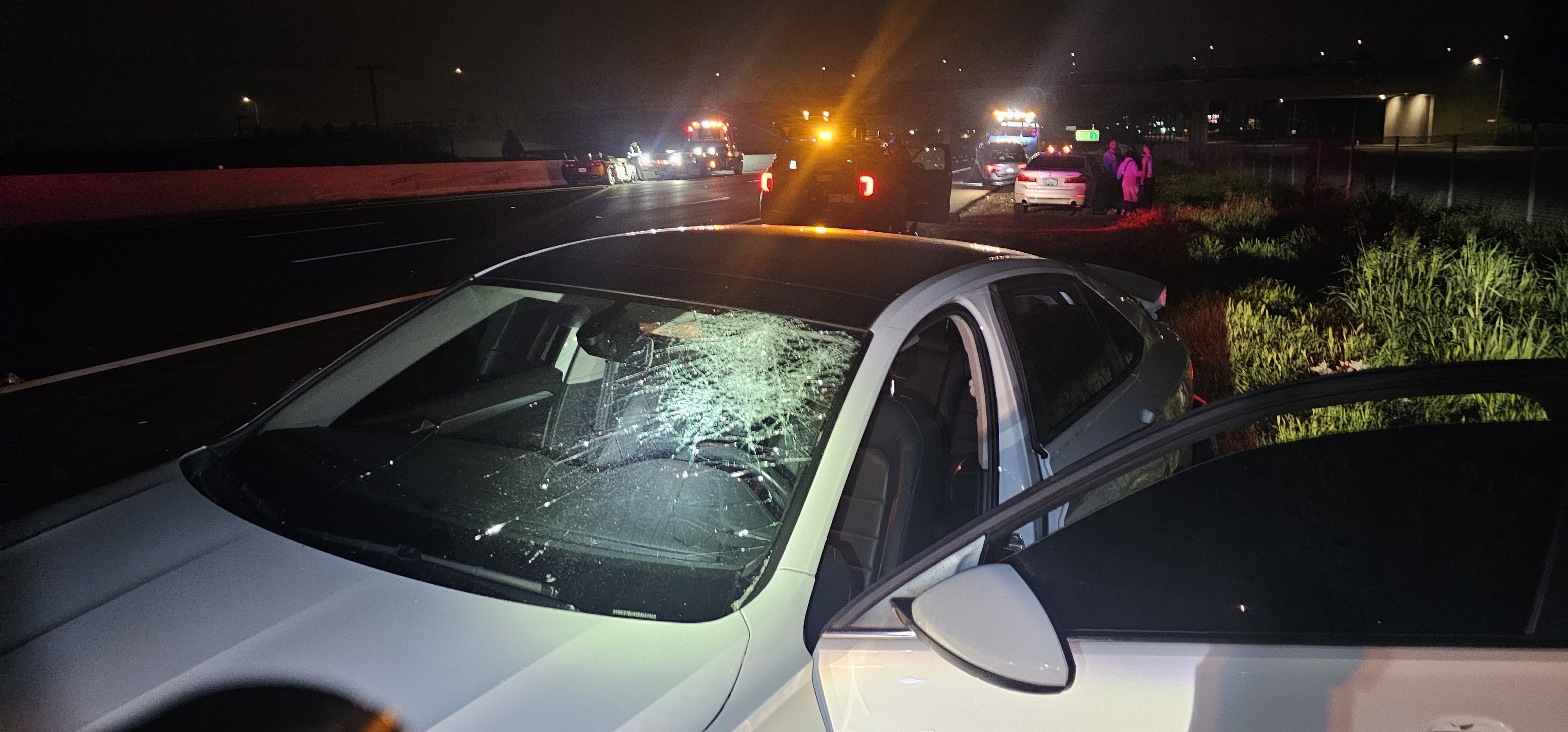 The incident was first reported at approximately 1:05 a.m. on the northbound I-215, just north of Scott Road. According to CHP dispatch logs, the crash involved at least three vehicles, including a silver sedan and a Chevrolet.