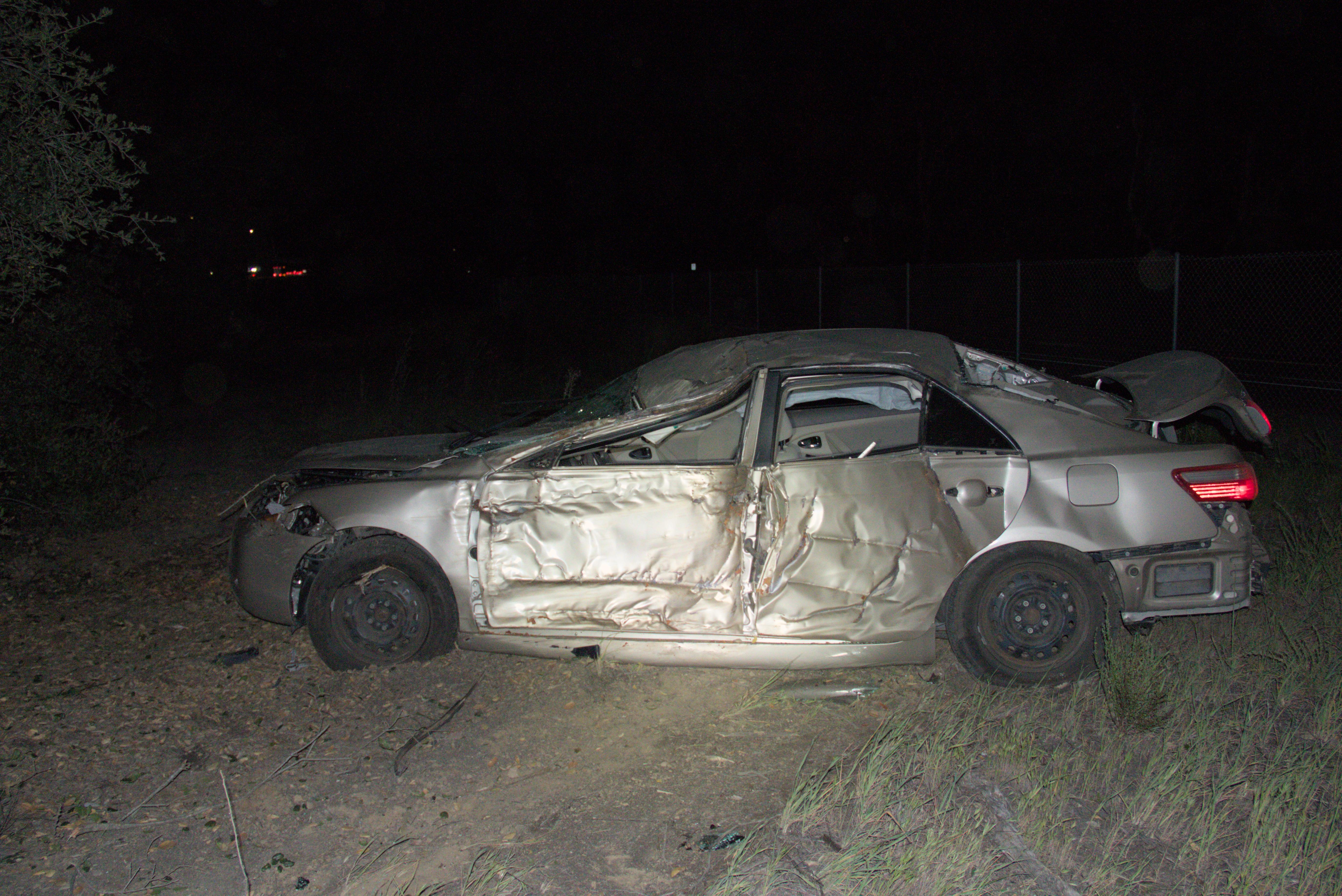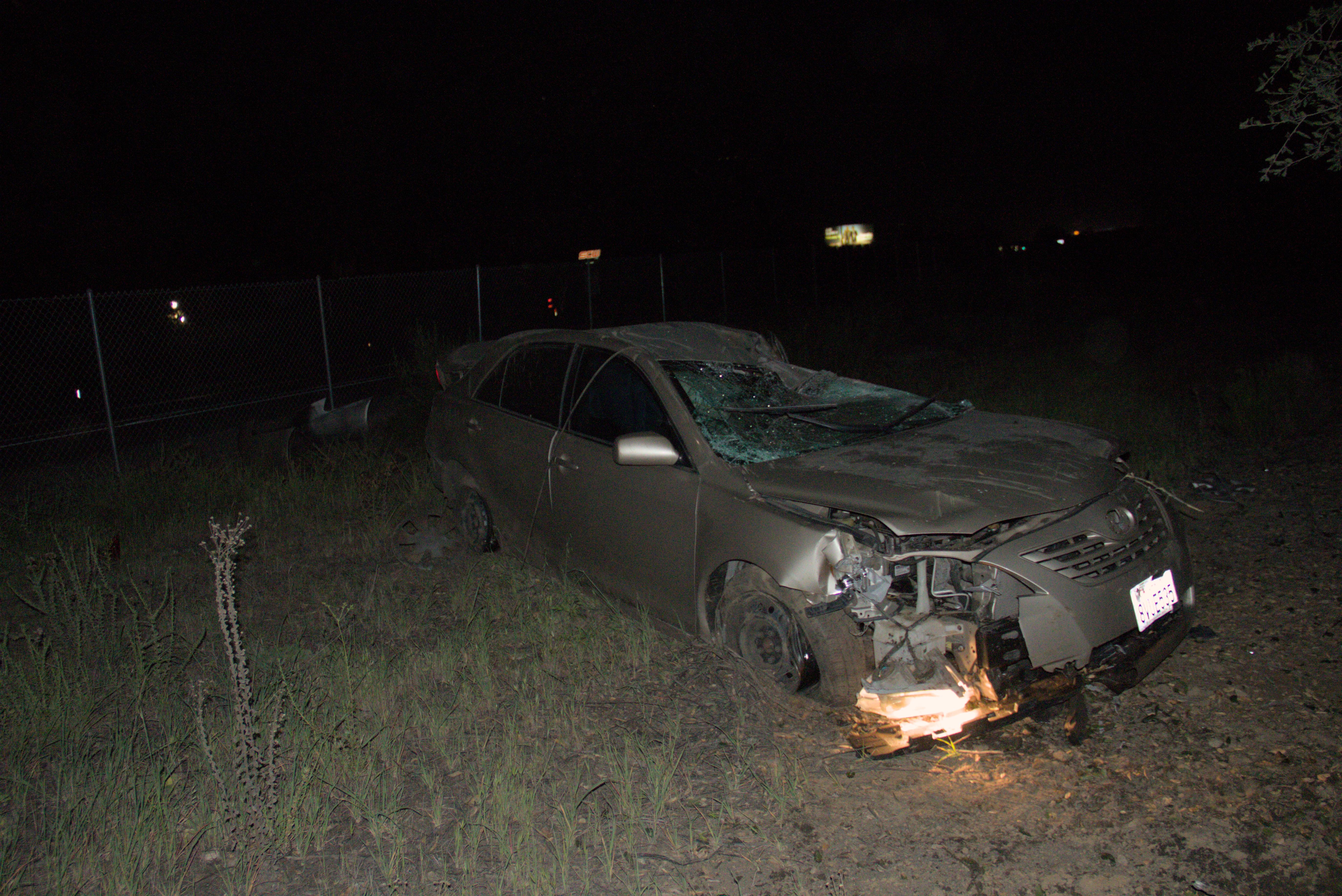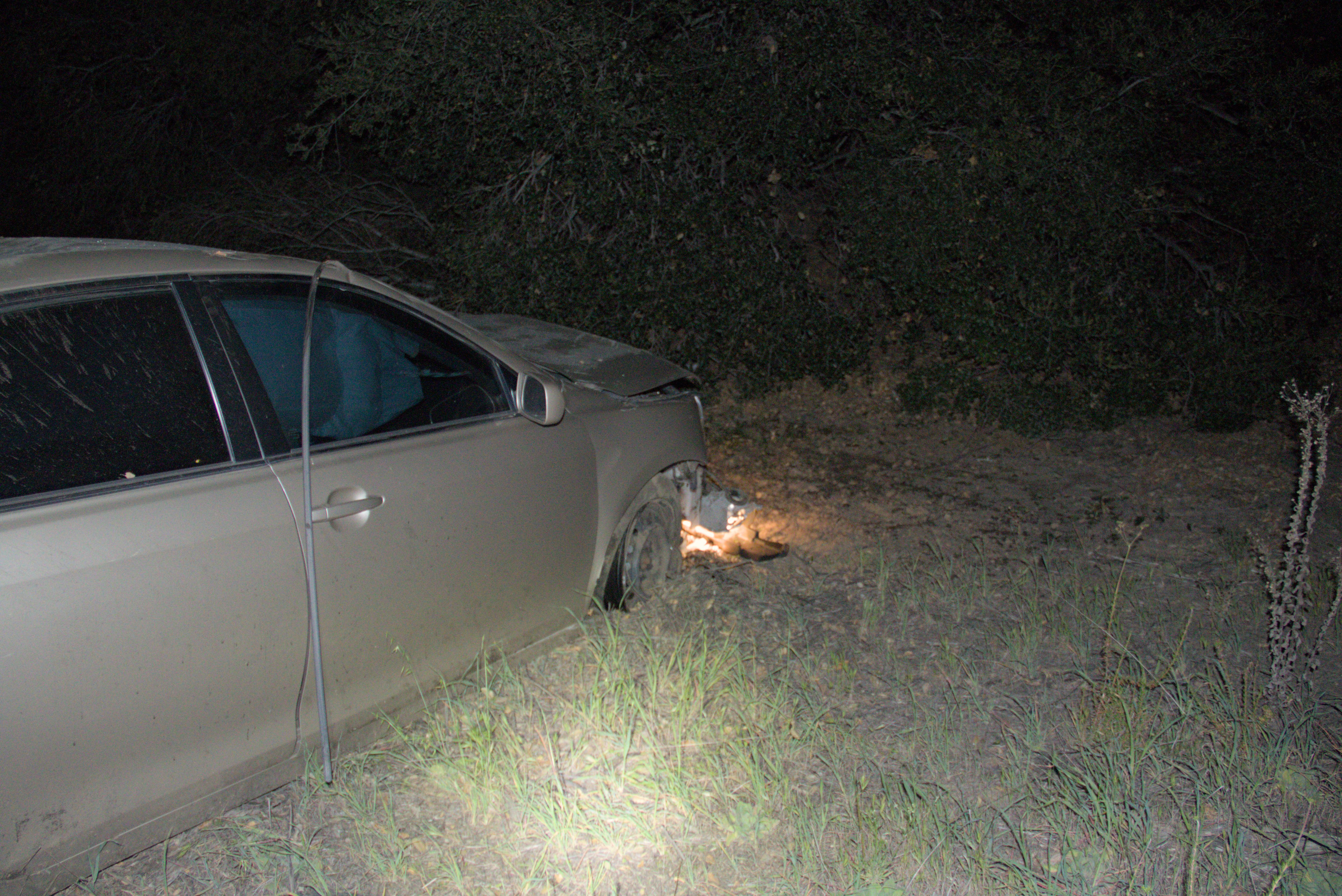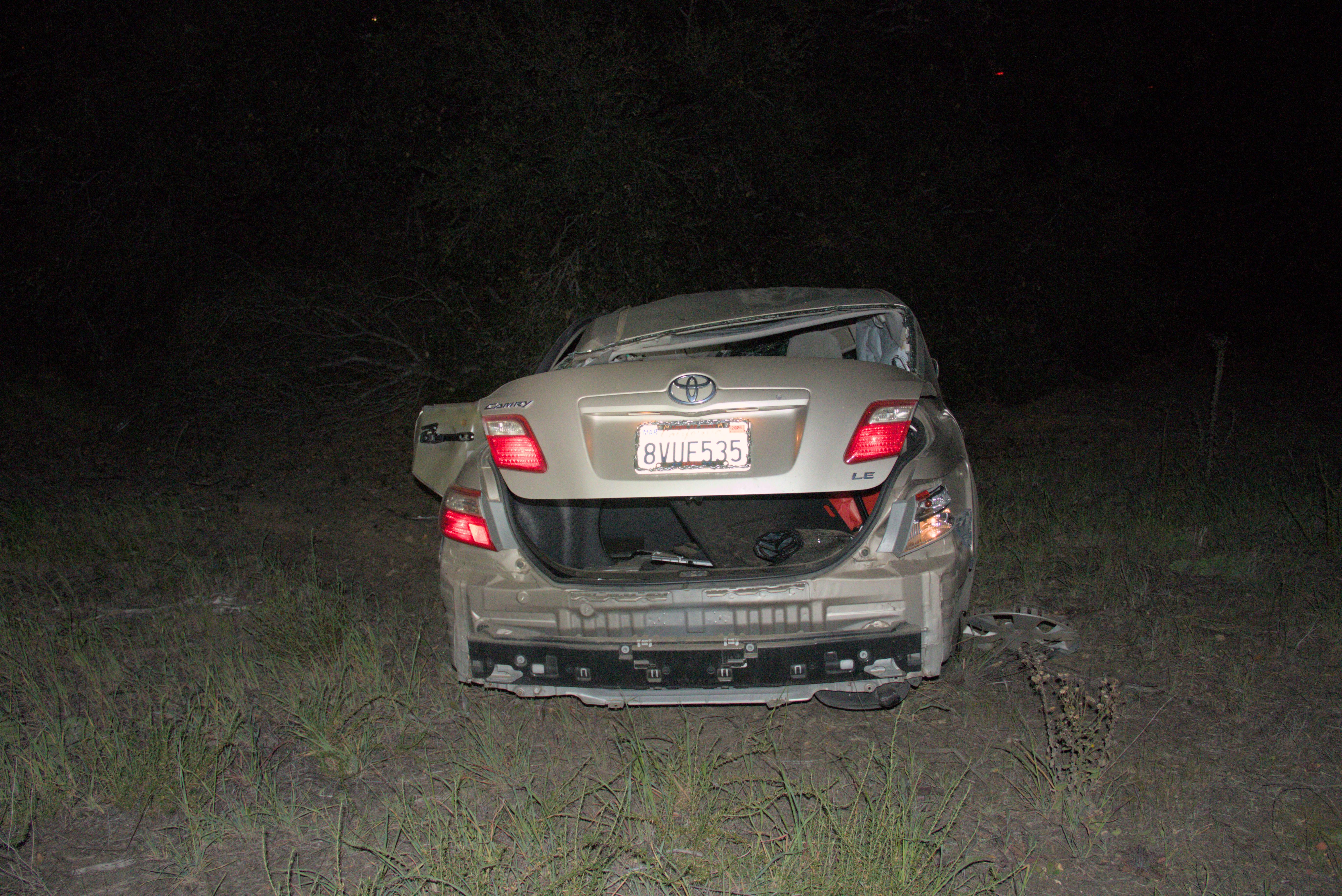 The incident was reported at approximately 9:56 p.m. on northbound I-15, south of Rainbow Valley Boulevard. According to California Highway Patrol (CHP) logs, a gray sedan reportedly crossed from the left lane to the right shoulder before striking a tree and descending the steep terrain.