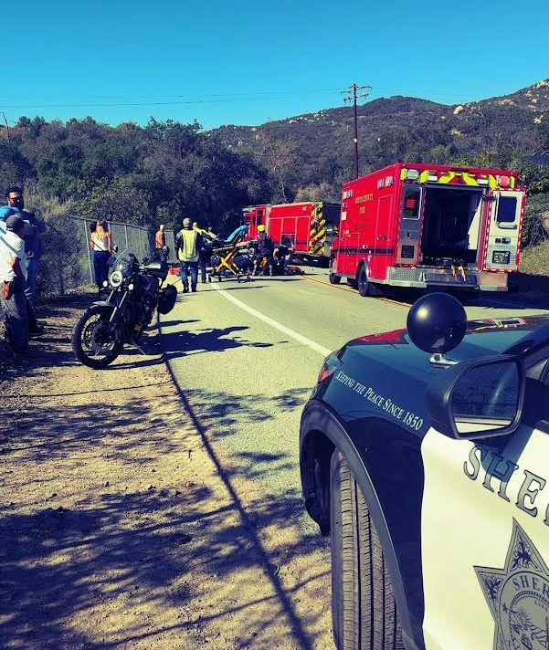 DE LUZ – A collision involving two motorcycles blocked all lanes of De Luz Road near Dos Cameos on Saturday afternoon, triggering a SigAlert and drawing a multi-agency emergency response.