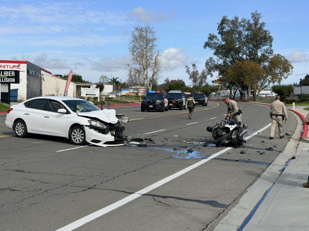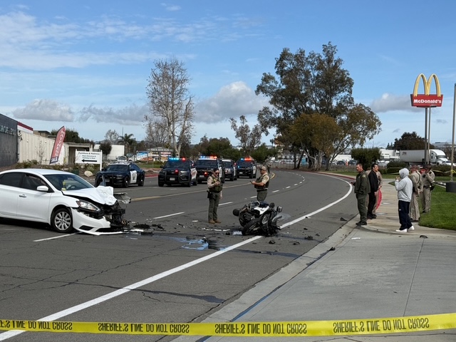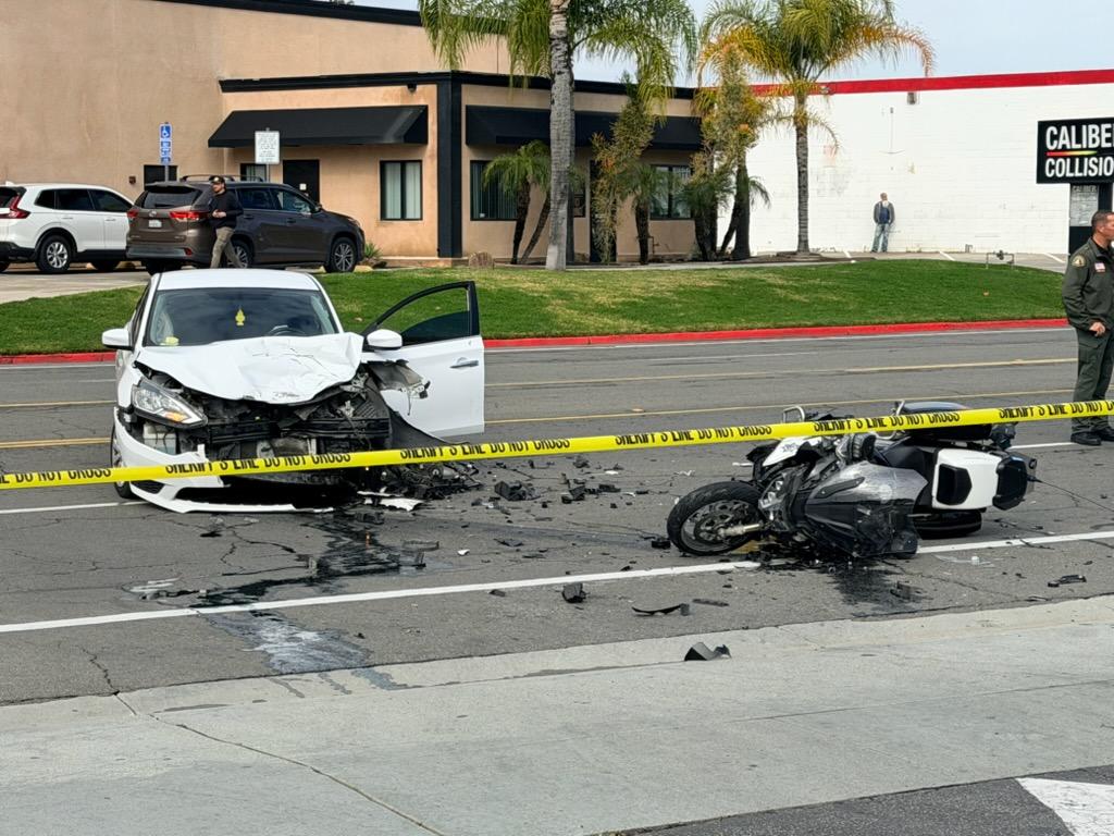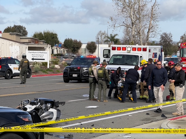 According to an officer at the scene, the CHP motorcycle collided with a white sedan driven by a young man. The injured officer was transported “Code 3” — an emergency medical response utilizing lights and sirens — to a local hospital. An officer at the scene confirmed the injured CHP officer is expected to survive.