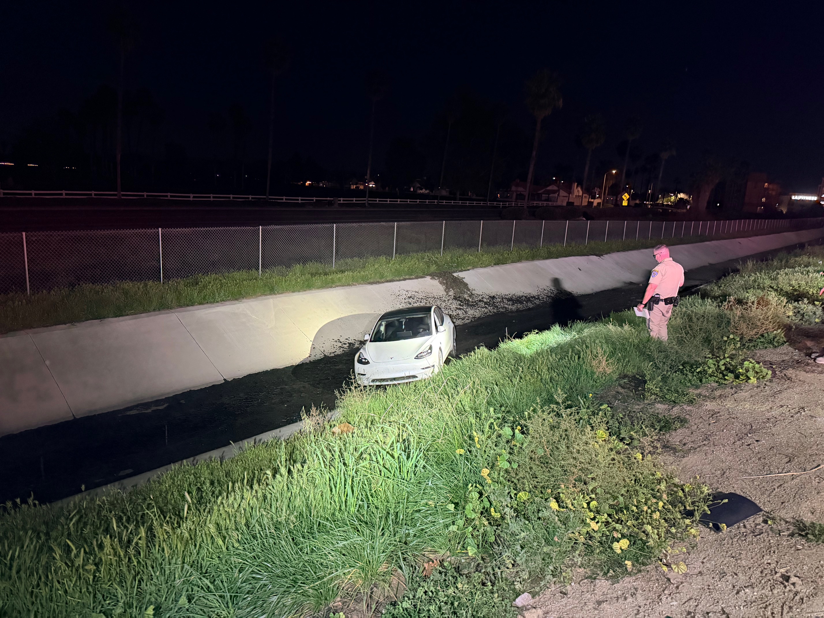 According to California Highway Patrol (CHP) dispatch logs, the incident began just before 6:00 p.m. The vehicle reportedly crossed all traffic lanes before traveling off the right side of the freeway and coming to rest in a concrete drainage channel at the bottom of the embankment.
