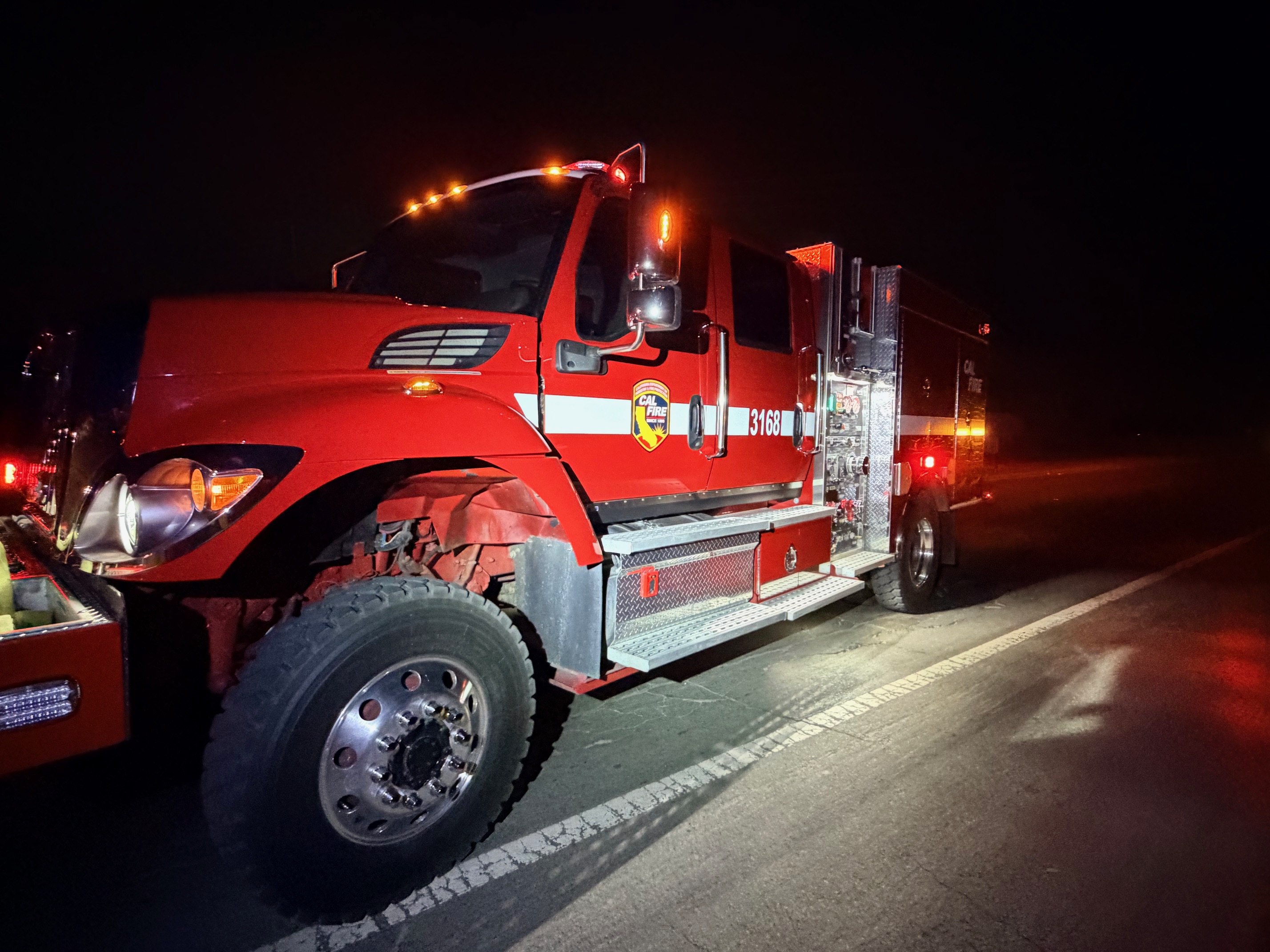 Responders noted a significant hazard at the scene, observing a propane tank situated dangerously close to the power pole, which was actively throwing sparks. The California Department of Forestry and Fire Protection (CDF) was quickly notified to respond to the fire threat.