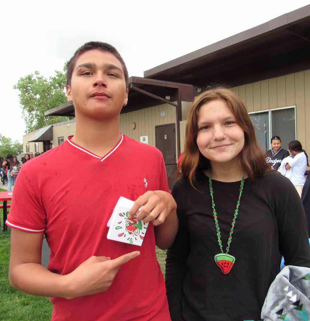 The first was a watermelon eating contest. After a few tense minutes, sophomore Johnathan Gladin was declared the winner. His prize was a hand beaded watermelon slice necklace created by Victoria Boiso. He happily presented it to his sister, Samantha Gladin, who is a freshman at the school.