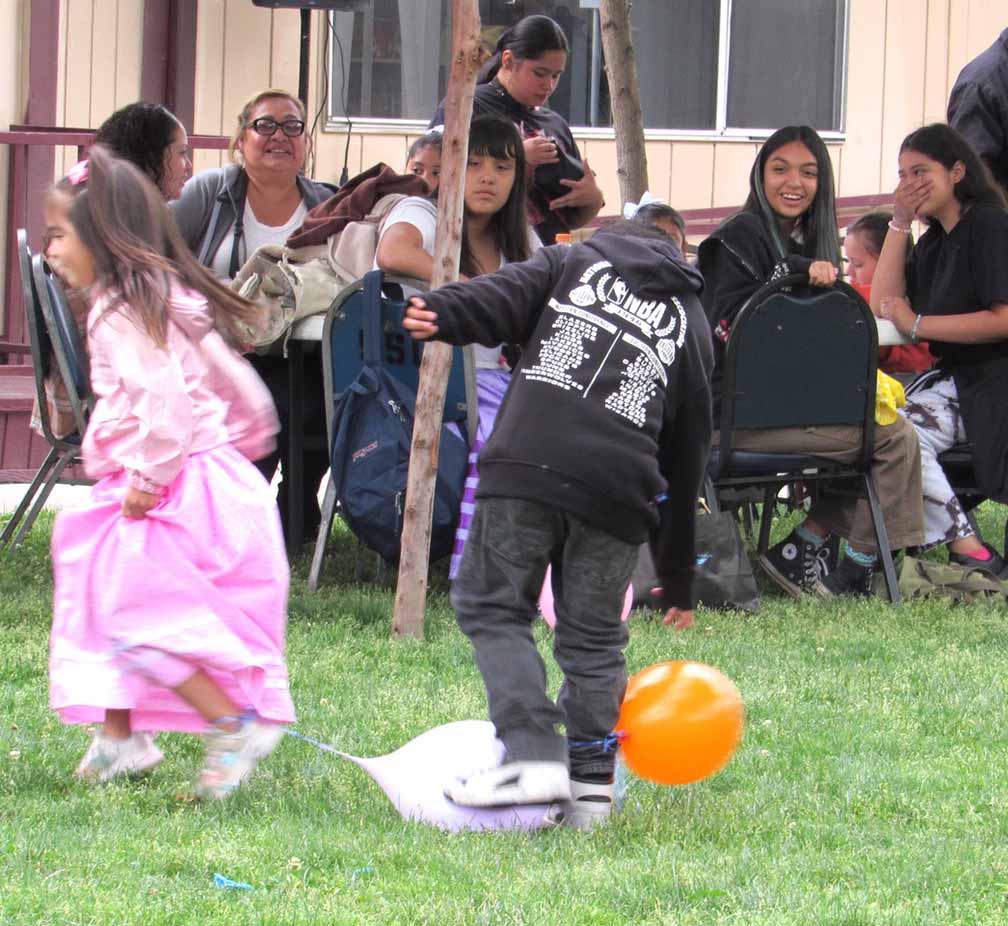The final game is one of the most popular. With a balloon tied at the ankle, participants must pop the balloon worn by their opponents, using only their feet. The goal is to be the last one standing with an inflated balloon. The first round, played by older students, saw brothers Edgar and Johnathan Gladin facing off with the latter emerging as the winner. Younger children were then invited to play and seventh-grader Angel Olaez won gobs of candy and snacks for winning that game.